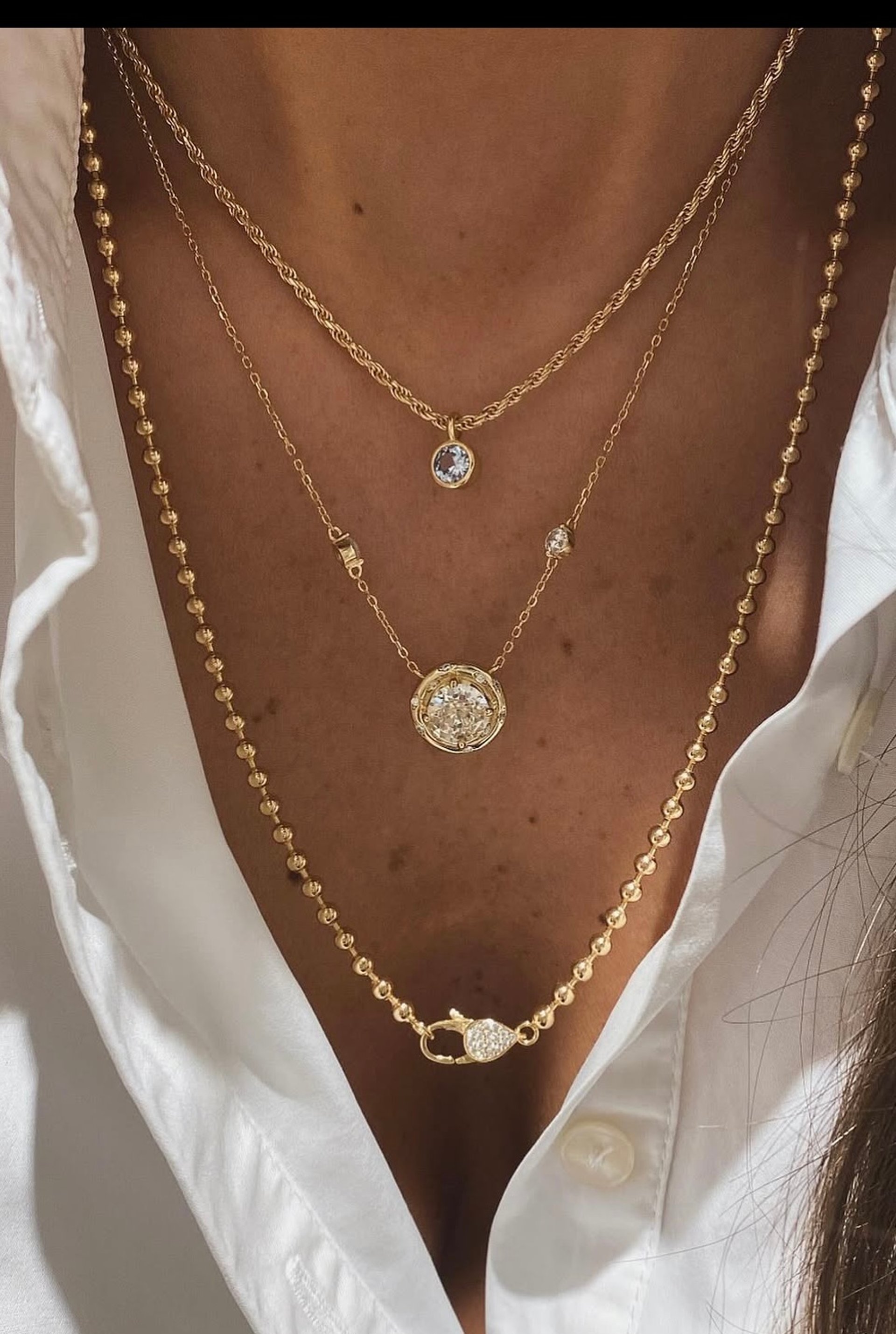 For a balanced, architectural look, aim for three distinct chain lengths. This prevents tangling and ensures every stone has its moment to shine.